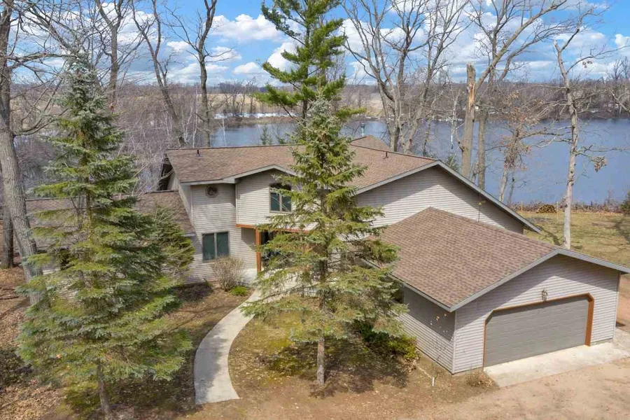 Truly amazing 13.75 acre peninsula with water frontage on LAKE EMILY & LAKE JULIEFULL RECREATION LAKES!!! Picturesque waterfrontage, 3 bedroom home, FOUR outbuildings. Loaded with MATURE HARDWOODS in a private paradise that attracts ABUNDANTWILDLIFE AND WHITETAILS. Ideal for HUNTING, FISHING AND YEAR-ROUND RECREATION!!! Enjoy panoramic water views from everyangle of this custom, 1.5 story home. Grand entry. Large open floor plan. TWO-STORY GREAT ROOM with exposed upper loft, knotty pinefinishes, stately WOODBURNING FIREPLACE w/STONE SURROUND and multiple sets of patio doors with deck access. Family room/denfeatures a freestanding wood fireplace, numerous built-ins and easy access to the covered deckperfect spot for taking in magnificent sunsetviews. Main level features 2 bedrooms, 1.5 baths, spacious kitchen and eat-in dinette. Second story OPEN LOFT flanked by two private rooms.Partial, unfinished basement. Attached 2-stall garage has two entry doors. OUTBUILDING DIMENSIONS: (1) 24x26 Detached garage, concrete floor, partially finished with wood stove, OH door (2) 20x20Garage with dirt floor and electric (3) 20x30 lean-to (4) 8x11 Garden shed. Seller represents 500 gallon LP tank is owned. Custombuilt one-owner home is 25 years old and set in most unique rural havencall today!
