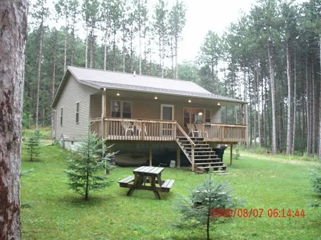 832 sq foot year'round home backs up to Hartman's Creek State Park with access to the trail system. Bow hunt out your back door, XC ski, or walk/bike the trails thru the park, to the Chain O' Lakes, down a State Rustic Road, or to the Yankee Village of Rural. Great setting with towering pines as your backdrop. Home is 4-years new and barely lived in. It is open concept with 2 bedrooms and full basement with egress window and installed bath fixtures--finish to your desire with an additional bedroom or rec' room. The property is comprised of 2 lots so you could also easily add on to the home or add a big garage or shed. You will enjoy the large deck off the back where you have ultimate privacy among the views of the pines and wildlife. Home is actually in Portage County for easy commute to Waupaca, Stevens Point, Amherst, or Almond.