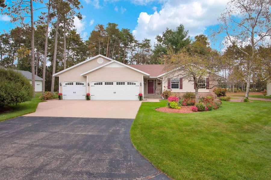Perfect place to call home. Beautiful inside and out. Super clean, exceptionally maintained 3 bedroom, 2.5 bath ranch. Kitchen includes stainless appliances and features quartz countertops. Living room with vaulted ceiling and gas fireplace. Convenient main floor laundry. Primary bedroom suite with walk-in closet and private bath featuring dual vanity, whirlpool tub and separate shower. The partially finished, expansive lower level provides great flex-space to use as you wish. The unfinished portion has a workbench and storage shelves galore. The park-like yard is beautifully landscaped and features multiple gathering spaces with a deck and fire pit area. Wooded back perimeter provides privacy and shade. Programmable, underground sprinklers are on a private well. Centrally located between Stevens Point and Plover with easy access to I-39, shopping, parks, the Green Circle Trail and the H...