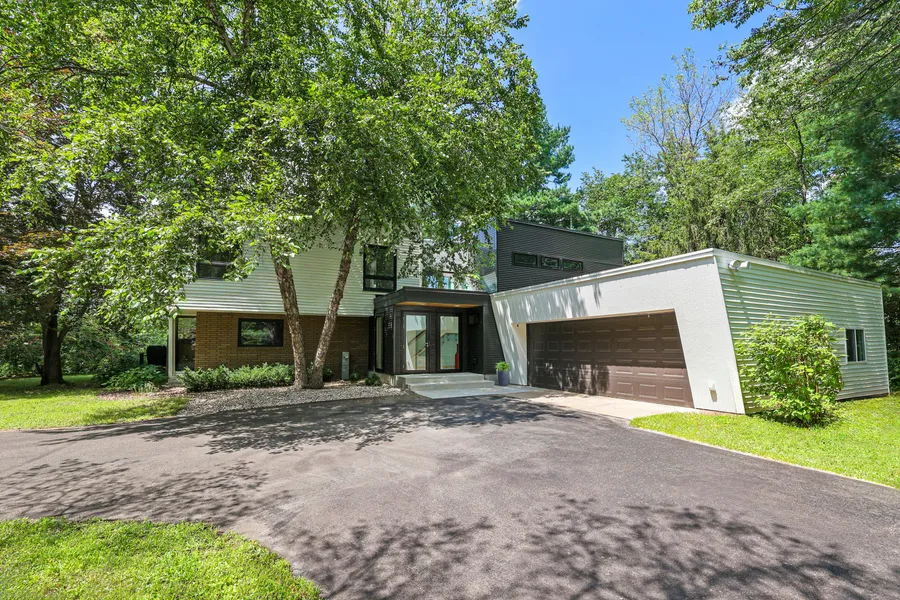 Transformed by a recent remodel that adds light, space, and style, this spectacular contemporary home offers a serene waterfront retreat on the shores of the Wisconsin River. The home's sleek design showcases expansive glass windows, high ceilings, and skylights that seamlessly blend the indoors with the natural beauty outside. The main floor features stylish, thoughtfully designed spaces that flow effortlessly together. The addition introduces a stunning entryway, a main floor bedroom suite, laundry, and mudroom. Additional highlights include a luxurious owner’s suite with a spa-like bath, walk-in closet and deck, an office area, lower-level bonus room, and a retractable dock. This remarkable home is sure to captivate anyone with an appreciation for modern design and a love of nature.