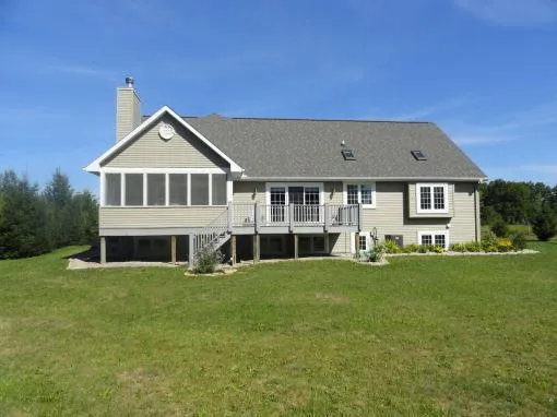 A large living room with wood-burning fireplace overlooks the water & offers sliding doors to the screened porch. Includes a formal dining room with sliding doors to the deck, master suite with gas fireplace, walk-in closet, sitting area, & tiled bathroom with separate shower. The master suite also features dual skylights with remote control open/close operation & remote-control shades. Convenient bathroom near back yard door, lots of storage & ample closet space throughout. Home pre-wired for in-home stereo & security system if desired. The details have been well thought out. Full basement with several egress windows plumbed for 4th bath could be an amazing rec room. Conveniently located between Wausau and Stevens Point. This is not one to miss!