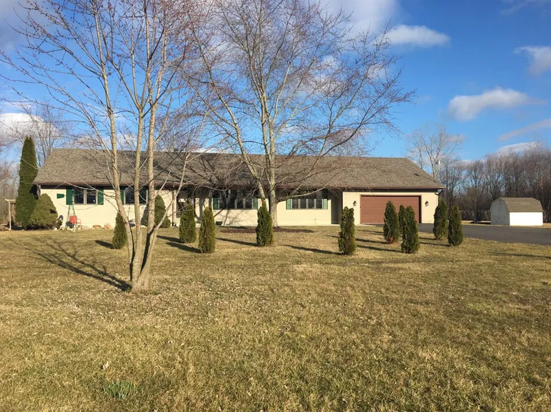 Looking for space inside and out? You've found it in this well maintained, 3 bed/2 bath ranch with full basement situated on 2.19 acres! Enter into the spacious living room with vaulted ceilings and FP with blower and built in shelves. An 8'slider leads to a 2-tiered deck overlooking the large backyard. The U-shaped kitchen, open to the living room, includes: center island, storage pantry, cabinets with pull out shelves, appliances stay! Breakfast nook as well as a formal dining room that could also be used as an office. Master bedroom has ensuite bath and eng wood floors. Two more bedrooms and hall bath with dual sinks round out the main level. In the full basement you'll find a rec room with built in shelving, separate game area, non-conforming 4th bedroom and 36 x 25 storage/workshop as well as utility room with newer furnace, AC, water heater and sump pump. Oversized 2.5 car garage, ...