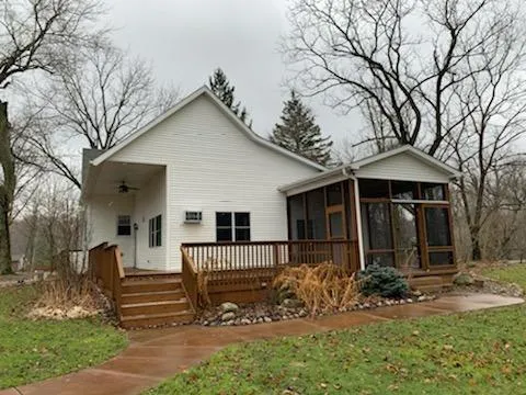 Perfectly situated on just over 5 acres of land, this unique 4 bedroom home is ready for new owners! The main floor features a family room with a fireplace, a 4 seasons room with another fireplace and a main floor master bedroom with attached 3/4 bath and a walk in closet. Heading up just a few short steps will get you into a breakfast nook, updated kitchen with ample counter space and cabinets and a HUGE walk in pantry. There is a formal living room and formal dining room and a private office just a few steps down from here. Upstairs there are 3 good sized bedrooms as well. The basement is perfect for storage, crafts, a game room, or whatever fits your needs. Outside there is a screened in porch, firepit, landscaping and a couple of pole barns measuring 24X32 that is connected to another 24X45 and a separate 24X18 all with overhead doors. Schedule your private showing today!