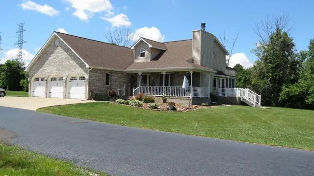 Want all the bells & whistles of a new home?! In country but close to town? HERE IT IS! 2 story 2x6 constructed, 4 bdrm/3 bath/3 car on 2.8 acres CUSTOM home.New carpeting, Vaulted/Cathedral ceilings,curved stairway,French doors,walk-in lite closets.Gas/wood fireplace w/alcoves. Kitchen w/large peninsula bar, hickory cabinets, gorgeous granite counter tops, stainless steel appliances, (2 dishwashers-new frig), floor sweep. Food/appliance pantries.Dining area access sunroom & pond deck.Main floor master suite, deck access.His/her closets,designer bath,heated flrs, built in water closet & sound system, walk in shower, dual granite vanities, stand alone tub.Laundry/mudroom off garage.Upstairs overlook could be 2nd living room or office. Abundant storage. Fresh water pond, 3 decks/covered porch, double connected pole barns w/elec, water, cable & roughed in 1/2 bath. Backs up to nonbuildable ...