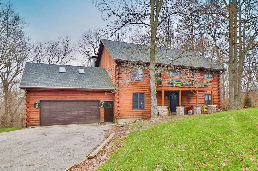 This 2-story Log Cabin on over 2 acres is straight out of a Hallmark Movie! Featuring over 3700sqft with finished walkout basement, this is the space you've been looking for! Covered porch welcomes you to gracious foyer with open staircase. Semi-open floorplan boasts a formal dining room, 2-story living room with wood-burning fireplace, & guest room/office with ensuite bath. Large kitchen with pantry, full appliance package, & granite island leads to a large deck with wooded views. Upstairs, escape to your main bedroom w/french doors, private whirlpool bath, & balcony access. Large bonus bedroom, a full bath, 2 additional bedrooms, and a large laundry room complete the 2nd floor. Basement features new flooring, new ceiling, access to patio, a workout room, bar, storage area and a full bath. Outside, you will enjoy walking trails and a firepit area in your own private backyard oasis (with invisible dog fence!). New roof within the last 4 yrs. Call today before this one is GONE!