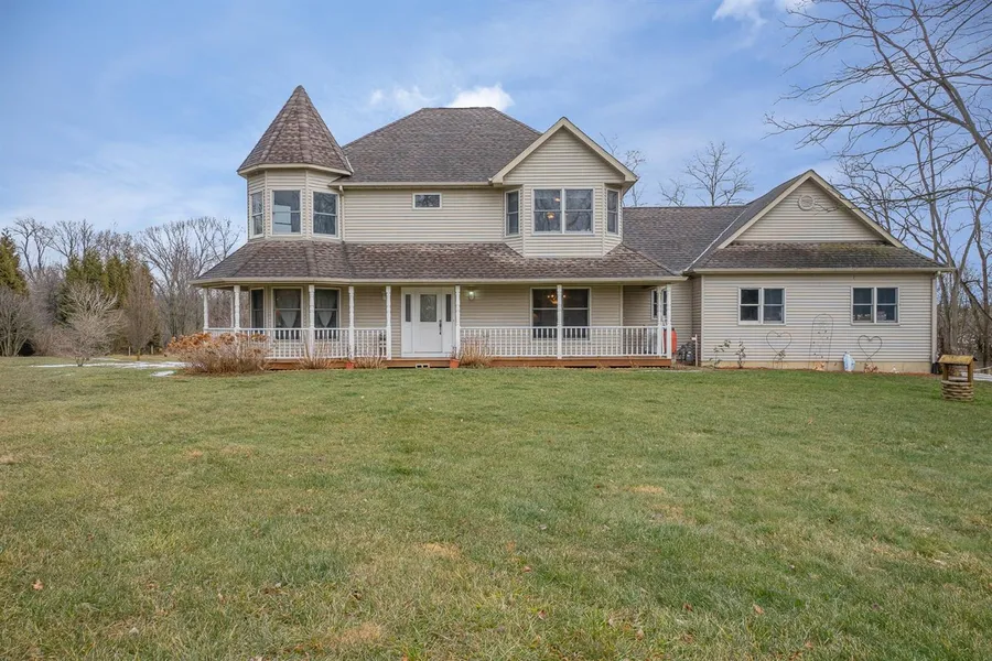 PERFECT PRIVACY surrounds this 4 Bed, 3.5 Bath, 2 Story on 12 acres! Yet, 15 min. from I65 & Valpo. BRING YOUR HORSES! W/ 4 Stall Horse Barn, 2 Pastures, & Riding Arena they'll call it home!! Best of both worlds - open acreage, woods w/ trails, & apple trees for snack!! Home built to appreciate beauty of the land from the Wrap Around Front Porch, Large Back Double Deck, or inside from Turret & Bay Windows thru out! Plenty of room to move inside, too! Enjoy the PARLOR w/ Turret Windows, or visit in FORMAL DR. Oak floors cascade between the two & up stairs. Spend mornings in BREAKFAST ROOM or in KITCHEN cooking. Tons of cabinet space & large pantry! FINISHED LAUNDRY ROOM steps from kitchen. FIREPLACE in LR. Huge Master w/ Turret Windows & Walk In Closet. Bed 2 w/ Bay Window & Storage Bench. NEWER HALL BATH! W/O Basement has large Bed w/ Walk In Closet, HUGE REC ROOM, & NEW FULL BATH! Storage abounding, 3 Car Garage, NEW SEPTIC SYSTEM, Whole House Generator & more! DON'T MISS OUT!!!