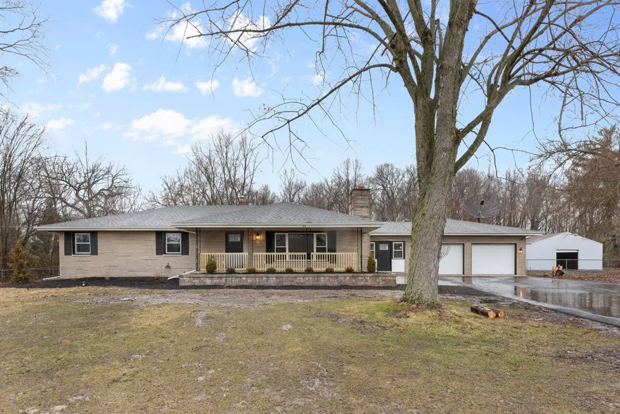 JUST LISTED ..Completely remodeled, 4 bedroom 3 bath RANCH on 1.55 ACRES in VALPARAISO. This stunning home is bricked with beautiful Ledgestone, has new windows, doors, flooring, cabinetry, plumbing fixtures, paint, HVAC & Asphalt driveway . It also features two fireplaces - one in the main living room & one in the basement living area. Large kitchen has new cabinetry, granite counter tops, glass backsplash & all new stainless steel appliances. Main level master bedroom features two closets and spacious master bath with free standing tub & beautiful tiled shower. Basement is completely finished with possible 4th bedroom or office, enormous entertaining area & huge finished laundry room. Sunroom/Mudroom is conveniently located in between home and heated attached 4 car garage. New landscaping along the covered front porch and stone patio accent the front of the home. A 1200sf Pole Barn with over head door is located within the fenced backyard. Schedule a showing today!