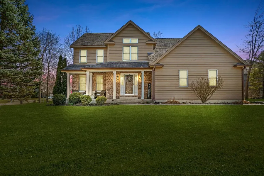 Tucked away in the QUAINT Woodmere Subdivision!! This SPACIOUS 4-5 Bdrm/4Bth, 2 Story Home is situated on a CORNER LOT. The front door leads the way to an OPEN CONCEPT main floor complete w/ beautiful Hardwood Flooring throughout, Living Room and Formal Dining Room. The Great Room showcases a gorgeous BRICK FP. The Eat-In Kitchen comes equipped w/ STAINLESS STEEL Appliances, Maple Cabinetry w/ Crown Molding, Tile Backsplash, Granite Countertops, CENTER ISLAND & Glass Slider to the Backyard Deck! Primary Bedroom includes Hardwood Flooring, Tray Ceiling, W-I Closet, Bath w/ Double Bowl Vanity, Tiled Shower & relaxing Soaker Tub. 3 additional Bedrooms and a full Guest Bath complete the second floor. FINISHED BASEMENT is complete w/ Rec Room, Flex Space, 3/4 Bath and Den/possible 5th Bedroom. Finished Heated Garage. Enjoy Fishing, Boating or Kayaking off the community Dock & direct access to Flint Lake. All of this is just minutes from Valparaiso's vibrant Downtown, award-winning School.