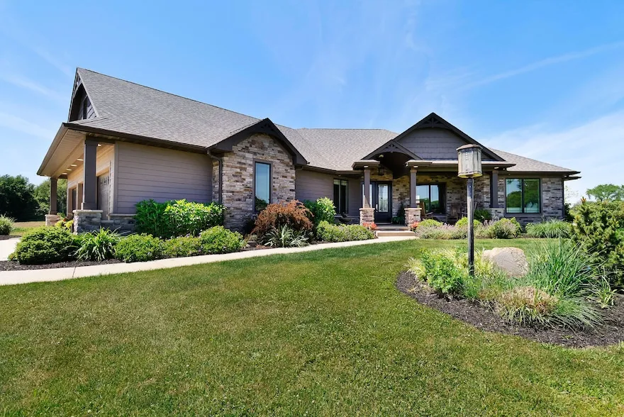 Discover your dream retreat with this exquisite ranch home, perfectly situated on 10 ACRES of stunning natural beauty. This property includes a 3-bedroom, 3.5-bath layout that epitomizes modern comfort and country charm. As you explore the grounds, you'll find a huge, spring-fed pond that brings lots of wildlife, offering an idyllic setting for serene sunset views. Inside, the gourmet chef's kitchen boasts top-of-the-line Wolf and Sub-Zero appliances, complemented by a spacious walk-in pantry, an abundance of custom cabinets. The main floor also features a luxurious master suite with a marble bathroom, complete with a huge walk-in shower and a freestanding tub. The walk-out basement adds an extra layer of convenience and luxury, featuring an additional kitchen, a library/movie room, and an exercise room. There's also plenty of storage space, craft/laundry hookups, and a dedicated office for your work-from-home needs. Located close to the breathtaking Dunes National Lake Shore and the charming town of Chesterton, this property offers the perfect blend of seclusion and accessibility. Don't miss the opportunity to make this exceptional home your own.