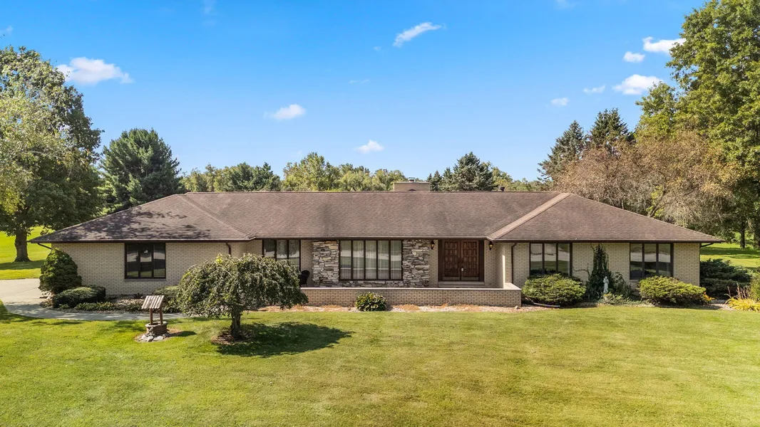 Sprawling Ranch with Acreage & Endless Potential. Welcome to this well-maintained 3 bedroom, 3 bath ranch tucked away on a quiet street. With just under 6 acres, this property offers gorgeous backyard views, mature landscaping, and plenty of space for outdoor living. Whether you're enjoying peaceful evenings by the bonfire or taking advantage of the barn for extra storage, this home offers the best of both comfort and convenience. Inside, you'll find a spacious layout featuring a formal dining room, inviting living room, and a large family room with a beautiful stone fireplace... perfect for cozy nights and gatherings. The full basement provides even more space and potential, whether you envision additional living areas, a workshop, or extra storage. Thoughtfully cared for, the home includes numerous updates for peace of mind. With its solid foundation, serene setting, and endless possibilities, this home is ready for your vision. Don't miss your chance to own this beautiful property with space to spread out and enjoy the outdoors!