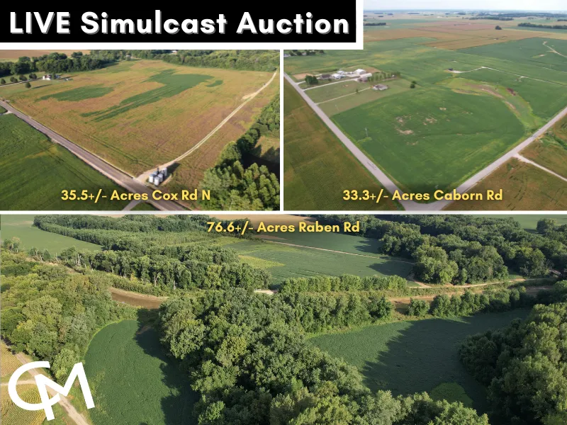 TRACT 9: 76.64+/- acres, 32.61+/- tillable; Raben Rd N; 24+/- acres enrolled in USDA NRCS wetland reserve easement in perpetuity; Tract 9 will not be offered in combination; Excellent recreational opportunities