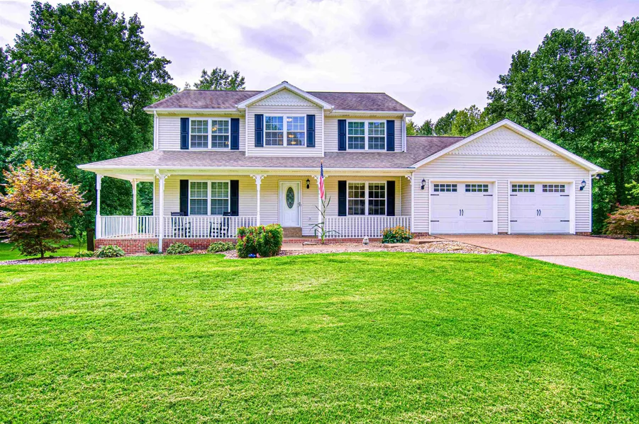 This beautiful home is situated on 2.9 +/- acres with 30x40 pole barn and an inground pool. This spacious home with peaceful country setting features a finished walkout lower level and is only minutes from Evansville. This immaculate home with wraparound porch offers 4 bedrooms, 3 1/2 baths and is perfect for year round entertainment with large deck overlooking the pool, woods with trails offering an abundance of wild life, and just in time for the cool evenings a fire pit with seating. The foyer with staircase opens to the dining room with gorgeous updated flooring that continues throughout the main level. The spacious great room opens to the updated eat-in kitchen with an abundance of white cabinetry, stainless steel appliances, and large built in pantry. The main level owner's suite offers a large walk-in closet and an ensuite bath. There is a guest bath to complete the main level. The second level has three spacious bedrooms, a Jack and Jill bath, and a spacious laundry with cabinetry. The finished walk out lower level is perfect for family game and movie nights with the spacious family room with projector and wet bar. There is large room currently being used for billiards and exercise. The walk-out lower level has a full bath convenient to the pool and outdoor space. The outdoor space will not disappoint with updated pool lighting, fountains, and the abundance of patio space. The 30x40 pole barn offers an abundance of space for vehicles, lawn equipment, hobbies, and much more. Many recent updates include fresh paint, newer appliances, concrete patio, deck, exterior doors and gutters, newer garage doors, and much more.