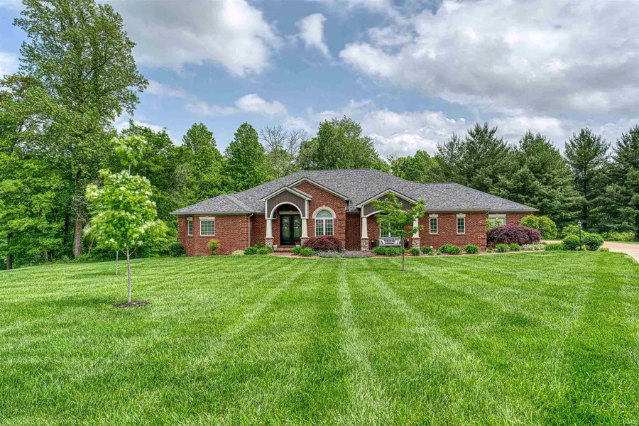 Welcome to a truly remarkable home, every detail exudes craftsmanship and thoughtful design. This residence is filled with features that elevate its charm and functionality, making it a haven of comfort and luxury. Step inside the Foyer to discover handscraped Acorn Maple flooring that adds warmth and character to the main living areas, plush carpeting graces the bedrooms and ceramic tile adorns the bathrooms and laundry room. Beyond the foyer is a cozy Great Room with built-ins that is open to the Kitchen and Hearth Room. The oversized Laundry Room allows for an abundance of storage with cabinetry and a sink to make cleaning up a breeze. The heart of the home, the kitchen, is a chef's delight, showcasing Amish cabinets, granite counters, and a full suite of built-in KitchenAid appliances, including a warming drawer, refrigerator, gas cooktop, dishwasher, wall oven, microwave, vented exhaust hood, built-in hidden spice drawers, beverage chiller, and a center island with a butcher block top.Adjacent to the kitchen is a spacious Hearth Room, featuring a cozy gas fireplace and direct access to a sprawling 693-square-foot covered screened-in back porch, overlooking a tranquil and private backyard oasis. Perfect for outdoor entertaining or relaxing, this porch is equipped with a second built-in exhaust hood for your gas grill, ensuring the space remains pristine.The home also boasts a generous side-load 3-car attached garage with utility sink and pull-down storage overhead, providing ample space for vehicles and belongings. The curb appeal of this home is unmatched, with beautiful lawn and landscape and a new roof was just installed in 2024. Each room is generously proportioned, offering a sense of spaciousness and solace. The massive primary suite is a secluded retreat, perfectly designed for relaxation and privacy. With access to the back porch, it offers a serene escape, whether you're unwinding in the hot tub or enjoying the peaceful surroundings. The primary bath is a true masterpiece, featuring double walk-in closets with wood shelving, back-to-back vanities, a vast walk-in shower with glass door, and an adjoining unique fitness room that could also be home office. Nestled on a sprawling lot that extends well into the wooded area, this property offers endless possibilities for outdoor enjoyment and the potential addition of a pool. Spend evenings outside on the additional patio or around the fire pit!