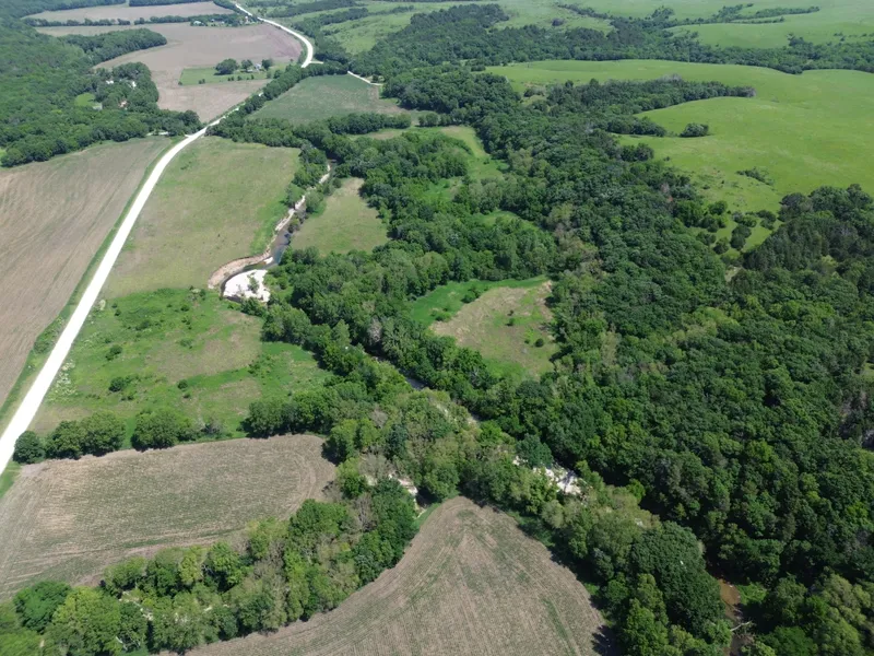 One of the property’s most compelling features is Spring Creek, a year-round stream that winds through the middle of the land. As a significant tributary in the region, Spring Creek flows into the Big Blue River at the north end of Tuttle Creek Reservoir, helping support the area’s overall watershed and contributing to one of northeast Kansas’ most important water systems. The stream...