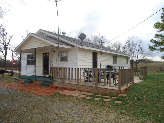 Very nice country home with many updates! Home has metal siding, 2 bedrooms, 1 full bath, large open kitchen-dining-living area with beautiful original red oak flooring, and huge utility/ mud room. Updates in the last 2 years include new central heat/air, hot water tank, plumbing, electric, large deck, and ceramic tile flooring in bath, utility room, and kitchen counters. Beautiful acreage with mature pecan trees, pine trees, and recently planted fruit trees. Vinyl fence entrance, totally fenced, pipe corral, loafing shed, shop building, carport, and stocked pond. Home is total electric, water well, and septic. Owner will pay closing costs with acceptable offer!
