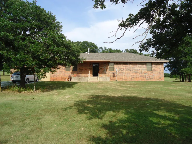 See this maintained fenced & cross-fenced 120 acres ready for livestock. Four ponds w/one (per seller) apx 17' deep in center. Loafing shed w/loading chute; X-large carport could be used for implement shed; two storage sheds apx 8'x12'; & a apx 24'x32' detached garage with concrete floor, electric, overhead door opener & insulated ceiling provide abundant storage. There are pecan trees, a wet weather creek, & new fence on West. Large rooms; per owner living rm is apx 13'6"x23'5", & has a propane wall heater as backup in case of power outage. One-owner custom built with 2"x10" floor joists; 6" insulated exterior walls; stained ash cabinetry; & a free standing wood-burning stove with blower. Large open kitchen has a dishwasher less than a yr old. Earlsboro telephone; District #3 rural water to house; also deep well in well house for watering lawn, etc; roof & Trane central heat and air uni...