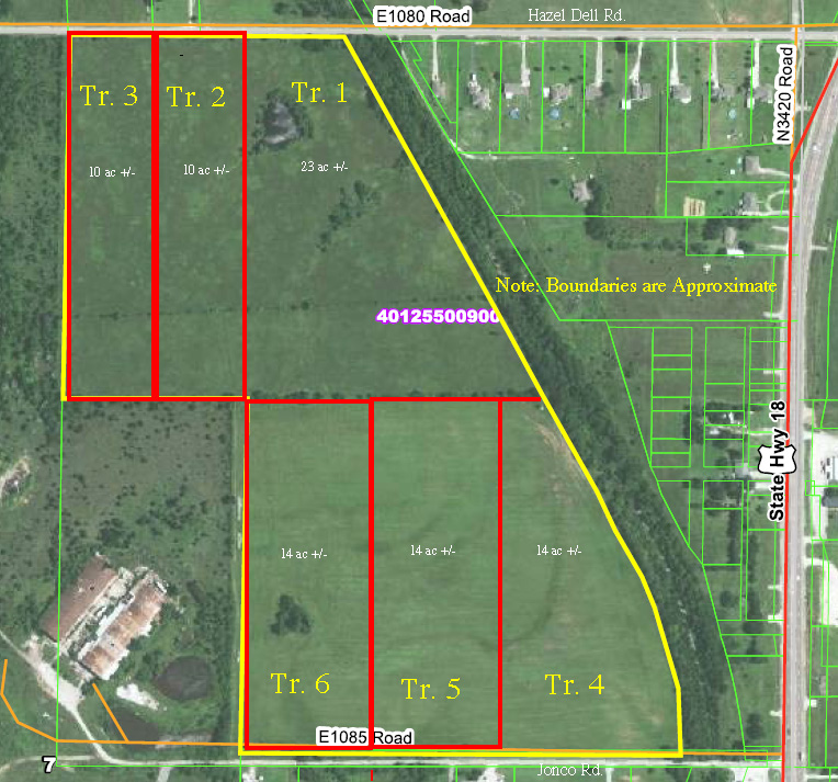 Tracts 4, 5 & 6 front on Jonco Rd./E1085 Rd. and begin less than 1/10 mile from 4-lane Highway 18.