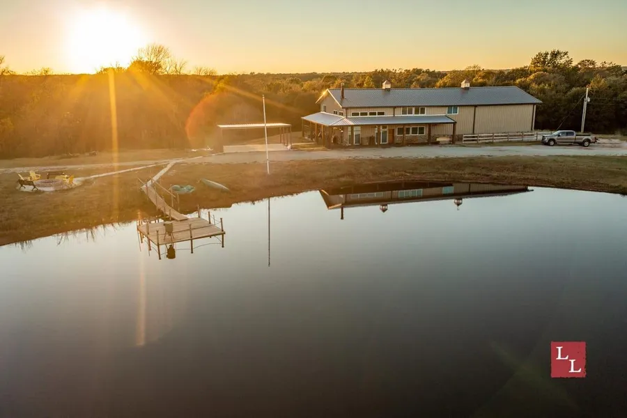 The Jones Ranch is conveniently located in southern Pottawatomie County just 35 miles from Norman and 50 miles from Downtown, Oklahoma City. The home is positioned next to a 3.5+/- acre lake that has been dug out to over 50' deep according to the seller. This property has been designed to thoroughly enjoy the outdoor amenities both at the home and all across the land. The inside of the house is perfect for entertaining with a very open floor plan that includes an oversized bar overlooking the lake. The kitchen & dining area are open to the living space that includes a fireplace that extends to the top of a 24' vaulted ceiling. There are bedrooms and bathrooms both downstairs and upstairs. Just off the garage is a mudroom with a built-in seating and storage area. There is also a utility room near the garage with a sink and built-in storage. Upstairs there is a game room in the loft area as well as a bar and kitchenette. This home has been fabulously constructed and would make a wonderful permanent residence or weekend getaway!
