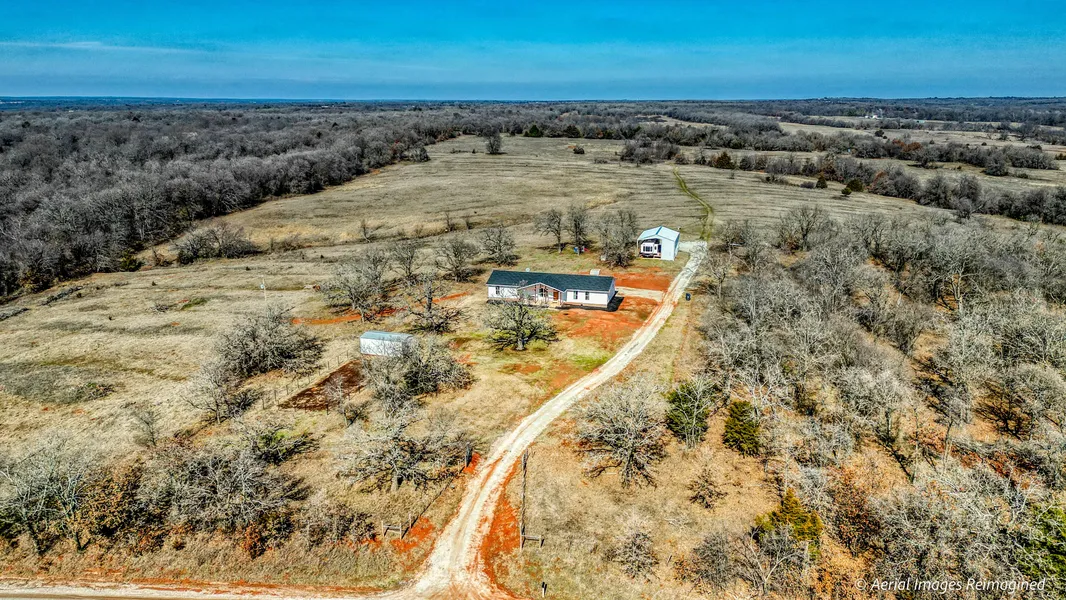 Come see this amazing 150-acre property and all it has to offer! The 2200 sq ft ranch style home was recently built in 2021 and features 4 bedrooms and 2 bathrooms, large walk-in pantry and laundry/mud room, beautiful farmhouse kitchen with farmhouse sink, stainless steel appliances, quartz counter tops, breakfast bar, and alder wood cabinets. All bedrooms are large and master bedroom has walk-in closet and master bath has a beautiful stand-alone tub. There is a storm shelter and Home is surrounded by 150 acres of great hunting land, with 2 ponds, RV barn has 2 finished rooms with a bathroom, septic, rv electric hook-up, and washer/dryer hook-up great for guest or an Airbnb. There are two private entrances on the property, a horse barn with stalls, plumbing, septic, another rv hook-up, and not to be missed is the large arena with working pens. There are also land only and land and barn options available.