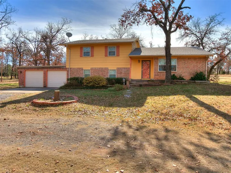 Circle driveway to this comfortable home that sets back off the road in the park-like setting with mature trees. Oversized 2 car attached garage with new LED lighting and fresh paint inside, and has 2 garage door openers, plus the 8 x 10 storm shelter in the floor. Bonus room (19 x 16 5 x 8 ) on this level has more storage than you could ever fill up! Plenty of room for a pool table or turn it into a media room, exercise room or a 4th bedroom! Just off this area is an amazing sewing room with 'to die for' storage and a custom-built sewing machine area and cutting board. This could also be a great office or hobby area. 1/2 bath next to it. Living room (17 x 20) has a gas log fireplace with a decorative spark screen. Large kitchen with ample counter and cabinet space. All 3 bedrooms are upstairs with a hall bath. Primary bedroom is 16 x 14 and has its own bathroom with a shower. 2 closet...