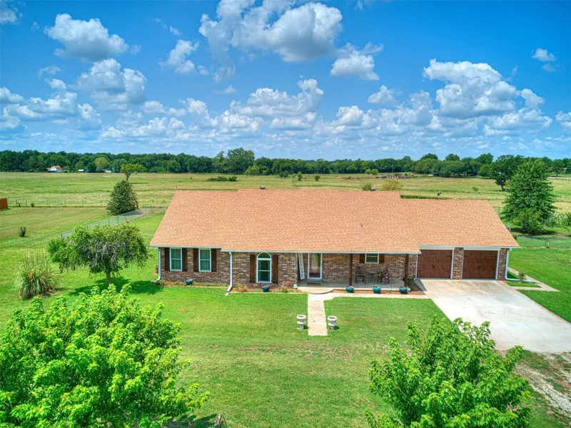 This charmer is conveniently located 35 miles from Tinker and 13 miles from Shawnee. This home has gotten a total makeover. Perfectly designed to work from home. The primary bedroom has a walk-in closet, a remodeled en suite bathroom with a walk-in shower and granite dual sink vanities. Guest bathroom has also been remodeled with granite vanity and tiled shower/tub with plenty of storage. All bedrooms have new carpet. Kitchen has recently been upgraded with granite and new appliances. Wood plank tile and regular tile has been installed throughout the house. High efficiency storm windows with shutters on front and side, vinyl siding/guttering has been added. Front porch posts have been replaced with cedar posts and new garage doors with openers. Well is on site but home has been hooked up to local rural water. There is also a workshop with window heat and air for the tinkerer. Two car gar...