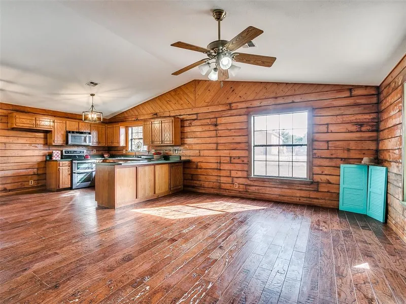 Charming log home has log exterior and half log and sheetrock inside walls. Sellers have done extensive work inside, updated the bathrooms, freshly painted the interior and the trim outside. Good neighborhood on a short dead-end (currently) road near Wes Watkins Lake. Property is fenced on 3 sides, livestock allowed on this 1.25 acres. Open floor plan with large kitchen. All rooms generous sized. Sellers just installed a new microwave and dishwasher. New 30-gallon hot water heater in July 2024; new pressure tank about the same time. Sellers have never used the woodburning fireplace. Seller says attic has an abundance of insulation. Covered front porch all along the front of the home. Sellers do not guarantee or warrant the washer and dryer. Minutes from I 40 and Firelake Grocery/Gas station. Very quick to TAFB, Shawnee and Midwest City. NO FHA, VA or USDA. Cash or conventional only! Sell...
