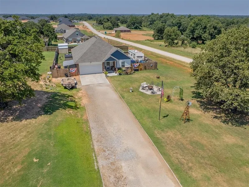 Enjoy Oklahoma sunsets from your covered back patio, surrounded by gorgeous landscaping, a new fence with backyard access, and not one, but two storage sheds for your extras. The long driveway adds curb appeal and extra parking, and the large lot gives you room to stretch out and enjoy the outdoors.