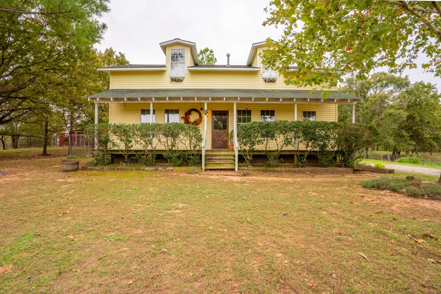 Picture perfect farmhouse just off paved Tucker Road in Tecumseh. This 2 story 3br/2ba home on 5 ac m/l just oozes southern charm. From the covered wooden porch that spans the length of the house all the way to the little red loafing shed & chicken coop, this is Southern Living. Just inside the front door gives way to the open living area w/windows aplenty, hardwood floors & a wood stove. Open concept w/the living area open to the kitchen. 2 zone central heat & air. The kitchen provides access to the mudroom/utility room & to the back porch. Next to the kitchen the stairs take you to the 2nd story bedroom complete w/its own full bathroom. 1br downstairs w/its own bath. Outside gives you a fenced in garden area, loafing shed, dry storm cellar & a fantastic old-timey, turn of the century building that was a country store years ago. With a little work, it could be anything- office/business/studio/guest quarter, etc. Covered shed w/stalls & pens for chickens, goats, horses, etc. $239,500 NEW LISTING!