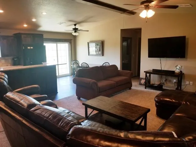 Built in 2017, this home features 1560 sqft m/l. 3 bedrooms, 2 full bathrooms, large living area open to kitchen, granite counter tops with large bar, ample cabinets and storage space. Large master suite with enormous bath and closet, Jacuzzi tub, walk-in shower with two shower heads, double vanity and tons of storage. Central heat and air, dishwasher, stove, large laundry room, combination flooring (carpet and tile), large crawl space for easy maintenance, 2017 in-ground storm shelter. Seller would consider dividing land to buyers needs depending on offer. 13.42 Acres m/l with approximately 1322 feet of Highway 99/US 377 frontage. Barn features concrete floor, 6 horse stalls with individual runs, bunk room with window ac, full bath with hot water, wash rack with drain, pull through sliding doors plus portable roping arena!