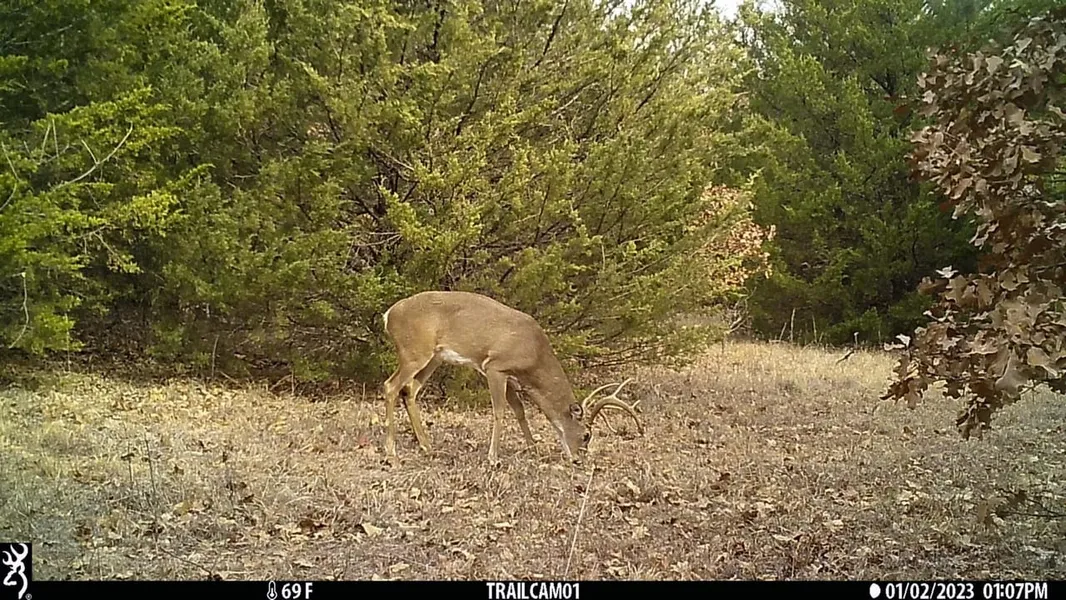 One of these trails leads to our favorite spot on the farm, ahidden pasture full of scattered pecan trees that sits adjacent to the creek in the western draw. It is surrounded by tall oaks on the flanking hillsides and presents an ideal opportunity to create a large food plot in some of the most fertile soil on the property. The land rises as you go west from here and transforms from a lush creek bottom setting into a naturally open ridgetop meadow speckled with cedars and thickets. It is easy to imagine mature bucks coming out of the creek bottom and cutting across this area as they search for hot does. In addition, the solid growth of post oaks on the ridges and slopes has scattered natural openings that are just large enough to make perfect bow hunting setups. There is no shortage of opportunity to manage wildlife here, aside from the deer, hogs are all over the place as well as a few flocks of turkey, and all of the small game you could imagine.