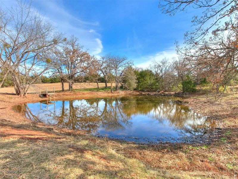 Build your dream home here! A manufactured or mobile may be allowed with a building permit, site plan, and Alta survey. Clear water pond with small dock and bass and crappie. 2 story metal barn with loft storage and concrete floor. Barn used to have electric, but the line was broken in a storm. Middle part of the barn is 36 x16 and there is a lean to on each side that measures 36 x12 each, all this equals about 1440 s.f. under roof. Beautiful mature trees in a park-like setting. Zoned Agricultural. Quick and easy access to HW9, I 40, Shawnee, TAFB, Norman. Frontage is approx 329.5 E & W. 660 N & S. ~~~~~ 2214 sf home and 5.01 acres adjoins to the west (mls#1090518 )~~~~~~~