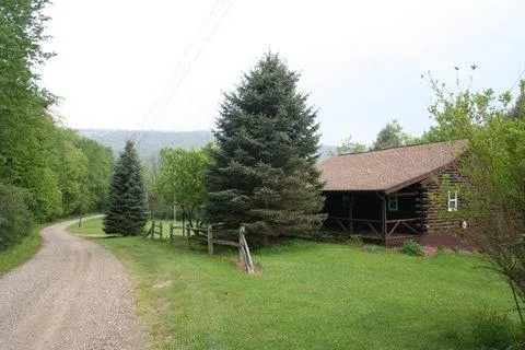 Native trout stream, cozy log home on beautiful 2.7 acre lot, great neighbors, private road close to Route 6 yet secluded - a really great offering. Patio doors open onto a 16 x 12 covered deck, or you can watch the wildlife from large windows in the living room. Several outbuildings and a full walkout basement that could be finished into additional living area. LOA 120331 $149,900