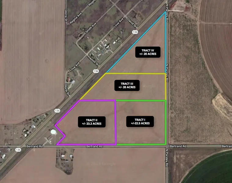 A 85.7 acre tract of land located minutes from downtown Amarillo. Property has frontage on both Bertrand Rd. and N. Parsley Rd. with state HWY 136 just Northwest of the property. The property is subdivided into two 20 acre tracts, a 22.5 acre tract and a 23.2 acre tract, but seller is willing to sell all or part to suit buyers. While currently in agricultural production, this property offers both commercial and ranchette opportunities. Commercial opportunities offer convenient access to state HWY 136, interstate 40 and Amarillo loop 335, but also only minutes away from Rick Husband International Airport in Amarillo. The properties are a horse lovers dream with ample room for the home of your dreams, barns and arenas. Great riding adventures are just a short drive away at Palo Duro Canyon State Park, or Lake Meredith National Recreation area. Also, enjoy Native American history at nearby Alibates Flint National Monument, the first national monument in Texas.