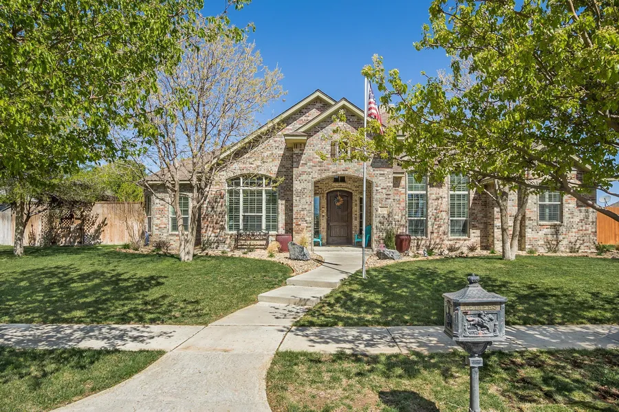 Captivating home in Westover Village across from park. Open concept w/upscale features including home automation, tall ceilings, crown molding,& recessed lighting w/dimmers & a fireplace in the living area. Dining area that leads to a side yard w/raised planters, abundant kitchen cabinets with under cabinet lighting. Isolated luxury master suite w/walk in closet, bath invites you to soak in the tub or the walk in shower. Front bedroom offers vaulted ceiling, next bedroom has built in desk. Separate office/study. Upstairs bonus room currently used as a home theater features bar area & 1/2 bath. The utility room provides a sink, full wall of storage cabinets,&work area. 3 car garage is over sized w/ 8 person TORNADO shelter. Solar panels to save on utilities.***NEW SHINGLES as of 5/8/23***