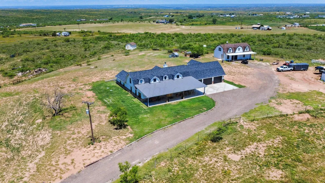 Charming Farmhouse Oasis! Welcome to your dream country retreat! Sitting on just under 20 acres, completely remodeled in 2022, this charming farmhouse has it all! A spacious home that offers the perfect blend of rustic charm and modern comfort. Ideal for multigenerational living, ranching or anyone seeking wide open spaces. Step inside to large entry way in the main home. Lots of natural light and vaulted ceilings create a comfortable living area with a gas fireplace adding a cozy feel . The immaculate kitchen offers Silestone counter tops, 6-burner gas stove, and enormous pantry. The alder wood cabinets add a luxurious touch! This kitchen will be where everyone wants to be. The pantry door is the original door from the old the farmhouse. The charm is overwhelming in this home. The beverage bar and spacious dining room are perfect for hosting all of the holidays. The primary bedrooms tranquility will be a nice escape from the long day of maintaining the property. The three additional bedrooms are generously sized with all three having their own ensuite bathrooms and large closets. The office off of the entry way will be plenty of space for working from home or an additional guest room! Stepping outside, the spacious patio is perfect for entertaining, grilling, and soaking in the beautiful sunsets the Texas Panhandle has to offer. The large shop is perfect for projects, storage, or running a small business. Whether you're a woodworker, mechanic, or entrepreneur, there's room here to grow your vision. Above the shop, there is a remodeled apartment. With it's own full- size kitchen, laundry, and septic; this apartment is the perfect set up for any long term guest! For the horse lover, the property features a well-designed 4-stall horse barn complete with a spacious tack room for saddles, gear, and supplies. Adjacent to the barn is a fully fenced riding arena (90x160), ideal for training, exercising, or simply enjoying the open skies with your horses. The surrounding fenced pastures offer plenty of room for grazing and turnout. All your animals will live a happy life on this property! The chicken coop and greenhouse will help keep your family self sufficient, cutting down the trips to town. With plenty of space to roam, this is country living at its finest, yet still within easy reach of local amenities.