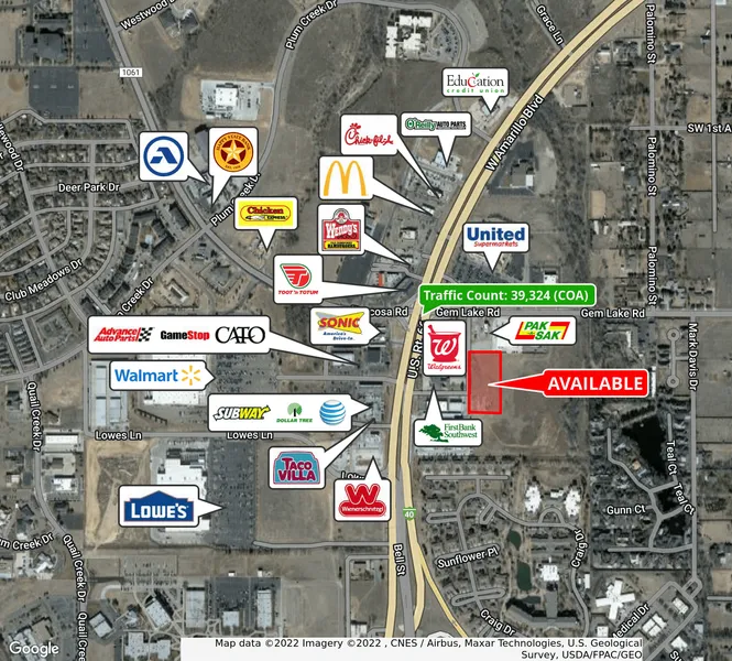 • Amarillo Blvd and Gem Lake Road has a traffic count of approximately 39,324 cars per day (COA)