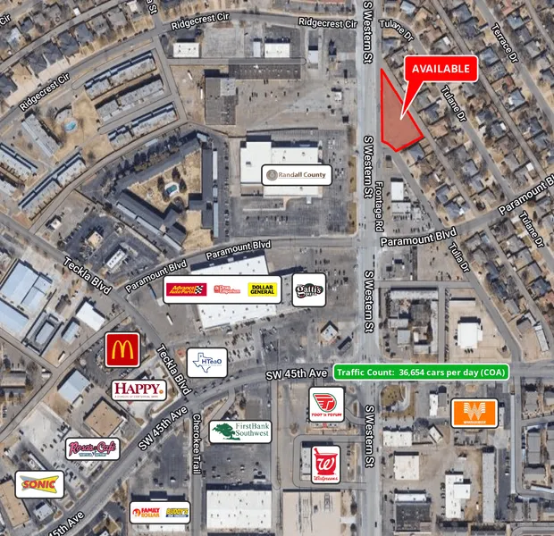 • 31,363 SF property featuring 3 lots: 4101 Western, 4103 Western, 4101 Tulia • Frontage on Western & Tulia Dr • 274' frontage on Western • Zoned Office District 2 • Utilities available