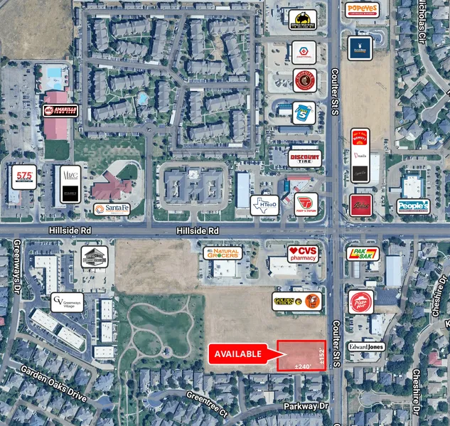 Ready for Development Excellent Traffic Exposure – 45,518 cars per day Strategically Located – Near lighted intersection at Hillside & Coulter Coulter Street Frontage – Direct access and strong street presence Shared Access Drive – Includes half of a 240' x 17.5' (4,200 SF) drive Surrounded by Established Neighborhoods – Dense residential base Strong area with retail purchasing power $25.00/SF