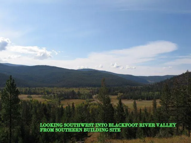 IN THE LAND OF THE SHINING MOUNTAINS. THE BEAUTIFUL BLACKFOOT RIVER VALLEY 8 MILES EAST OF LINCOLN, MT. THIS IS A WONDERFUL PIECE OF PROPERTY. BEAUTIFUL VIEWS EVERY WAY YOU LOOK AND YEAR AROUND ACCESS. PROPERTY IS VARIED IN TOPOGRAPHY, HAS SPRINGS, A CREEK AND VERY HEALTHY TREES. CHOOSE FROM 3 GREAT BUILDING SITES. A MUST SEE FOR ANYONE LOOKING FOR PRIVACY AND WANTS THE EASE OF GETTING TO TOWN. MLS-273861-$595,000