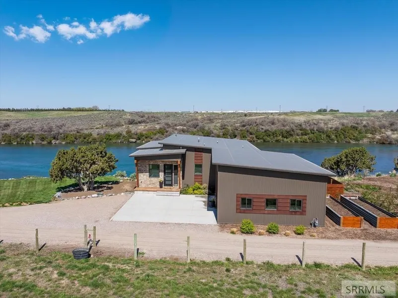 Waterfront retreat nestled along the Snake River offering world-class fly fishing and waterfowl hunting. The property boundary runs right to the waterline. Designed with a mid-century modern aesthetic, it seamlessly blends clean lines, expansive windows, and high-end finishes to create a bright, open and inviting atmosphere. Offered fully furnished featuring 4 beds, 3 baths and 3690 sq ft on nearly 7 acres. Cozy radiant heated floors throughout. Smart home amenities include automatic blinds, hardwired security cameras and a Tesla charger. Horse-ready with a lean-to, corral and 2 pastures with safe poly fencing. Pressurized irrigation. 2800 sq ft heated shop with 14 ft RV doors, 16 ft walls and bonus guest suite. Guest suite is 20'x20' 1 bed/1 bath with full kitchen and laundry. A gardener's dream with huge raised garden beds and fruit trees. Some extras include a RV dump station, two septic tanks, central vac, steam shower, theater room, icemaker (makes 100 lbs per day) with filtered water. How about your own putting green? This home has it all! If you are looking for a peaceful oasis that is centrally located to all that Idaho has to offer, this stunning turn-key property is unparalleled. SELLER WILL CARRY NOTE AT 3.99% INTEREST!