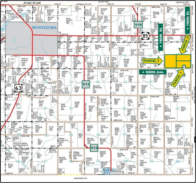 Research Parcel Information5 miles east and 1 mile south of Montezuma, IA. Take Hwy 85 east to 190th St., then go 1 mile south on 190th the farms are on the west side of 190th St. at the intersection of 500th Ave. and 190th St.