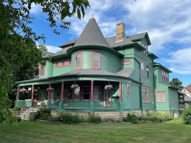 An iconic Victorian property in Grinnell's Historic District built in 1897 and locally known as the Carriage House B & B Inn for the last 37 years. The property is being sold fully furnished - all beds, furniture, kitchen and serving equipment, linens, and supplies to continue operating, if next buyer continues the business. In 1937, the property was acquired by Grinnell College and served as a men's dormitory until the 1950s. The property was then sold into private hands and had rental apartments. This property includes 5,901 square feet, with 900 square feet of owner's living quarters on the first floor at the back of the home. The 3rd floor includes 1,147 square feet of finished living space. As you enter the home, you will find a living room, parlor, library, and formal dining room with original pocket doors. The Parque floors in the main floor rooms are all unique. There is a grand staircase that takes you to the second floor with a landing and a back staircase. The second floor includes 5 bedroom suites all with a three quarter/full bath. The sixth bedroom uses the sixth bath not attached to the suite. There is a spacious common area on this floor. There are balconies attached to two of the suites. Siding was painted in 2022 and roof was replaced in 2024. There are two apartments within this property. A 2-bed apartment on the 3rd floor and a 2-bed apartment in the basement. The carriage house is a functioning 2-stall garage with an upstairs. Schedule your tour today!