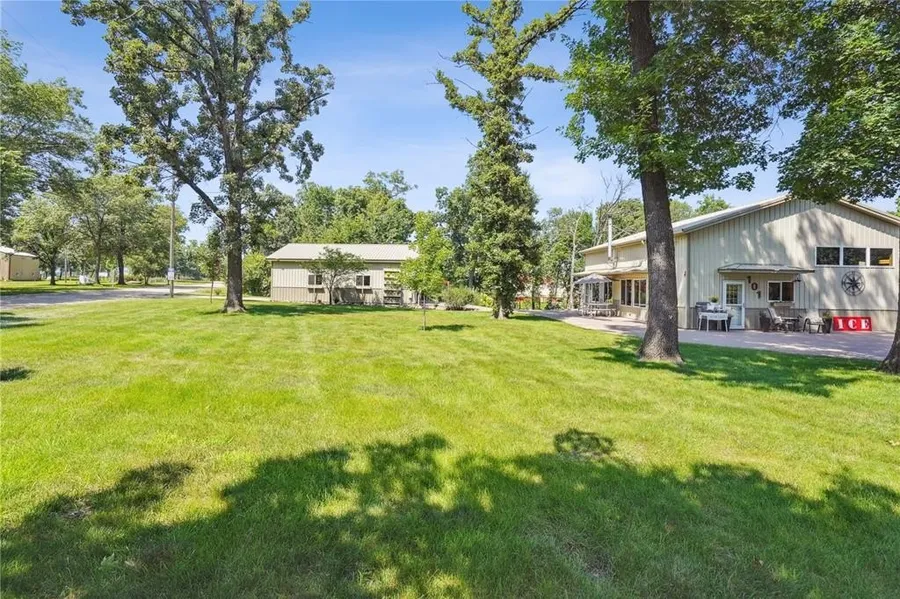 Lake Ponderosa Barndominium with 10’ Lake Access. Don’t miss this rare opportunity to own a unique open concept barndominium located on beautiful Lake Ponderosa in Montezuma, Iowa. Sitting on 0.61 acres, this 2-bedroom, 2-bathroom home combines rustic charm with modern comforts—and includes a revenue-generating bait shop! Step inside to a warm and inviting interior featuring stunning knotty pine throughout, soaring 13’ ceilings, and abundant natural light. The recently remodeled main bathroom boasts a custom Onyx shower, while the second bathroom offers a relaxing jetted tub/shower combo with tile surround. The expansive 1,422 SF garage is fully spray-foamed and includes a heated and cooled bonus space—perfect for a craft room, private lounge, or man cave. Hosting guests is a breeze with 4 camper hookups, each with drainpipe access, and two separate electrical boxes offering 50/30/20 Amp service. A private pathway leads to your 10 feet of lake access with a dock included, plus access to a shared dock platform ideal for unwinding and watching the lake activities.