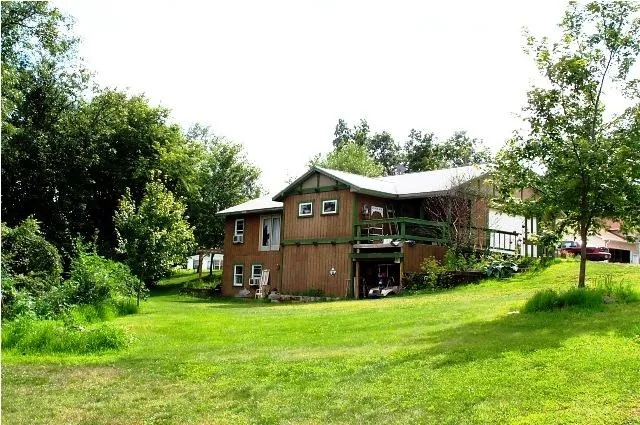 Do your family and friends gather around the kitchen table? Then this home is for you! Spacious kitchen with a view to the woods is only one unique feature of this ranch style home at the lake. The main floor also has the master bedroom, TV room/office and large bathroom with laundry. Downstairs is the second bedroom, a 3/4 bath, large family room with walk-out to the yard and a second kitchen. Best of all this home is built with eco-block concrete which makes it virtually sound-proof and energy efficient. This home is all electric, has a 2-car attached garage and has quick and easy access to the North entrance and V-18. Full-time for one family or vacation home for two families-this property is versatile!
