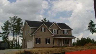New -- Large Lot Subdivision with access to 20+ ACRE LAKE. Home has 4 bedrooms, 2.5 Baths, large kitchen with Breakfast area open to family room. Dining room and foyer has hardwood floors, chair rail and double crown molding. Family room has gas fireplace with wood mantle, slate hearth and slate surround. Stainless steel double bowl sink in kitchen. Culture marble vanity tops in bathrooms, raised vanity in master bath with large fiberglass soaking tub, and a pedestal sink in the half bath. House has a front porch with power coated aluminum hand rails. Family room opens up to a 14' x 10' pressure treated rear deck overlooking a large 5.07 Acre wooded lot with lots of privacy. Horses allowed. BUILDER IS OFFERNING 3% IN CLOSING COST.