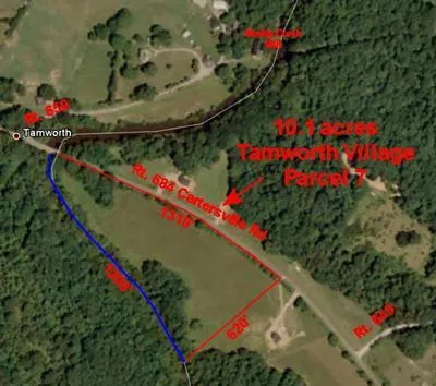 Rolling pastures and hardwoods trees with long frontage on Muddy Creek about 1/2 mile upstream from its confluence with James River. Near historic Muddy Creek Mill and town of Cartersville. 4 bedroom perc. Fish from your backyard.