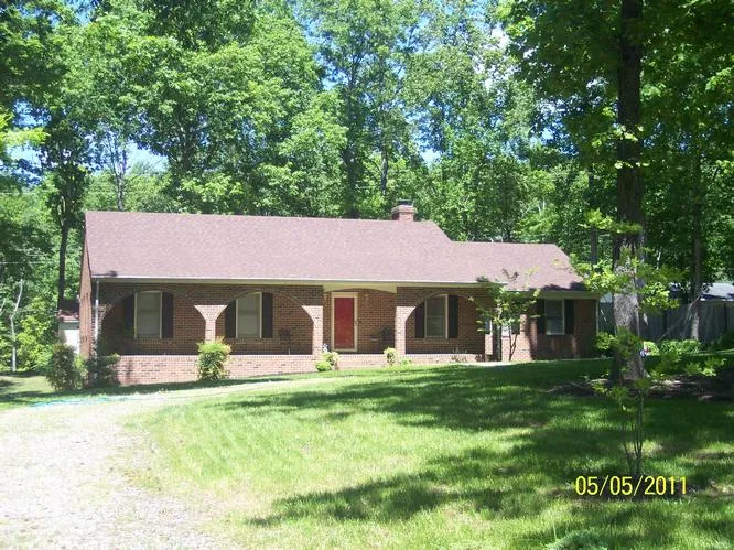 Lovely Brick Ranch in Powhatan Estates Subdivision. Features: 3 large bedrooms, walkin closets, Huge Greatroom, Large Kitchen with Dining area, utility room, back foyer, oversized brick fireplace, cathedral ceilings with exposed beams in greatroom, 2 tier deck, full front porch with brick arches, heatpump with central air, 2 car attached garage, detached workshop, large garden area, lovely landscaped yard, partial privacy fence.