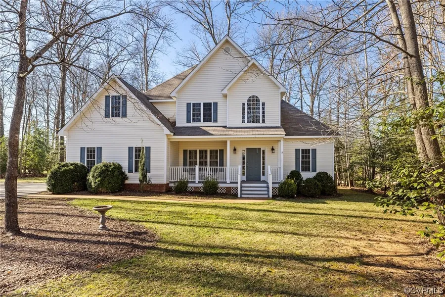 Welcome to The Links at Mill Quarter! This 3015 Sq. Ft. 4 Bedroom, 3 Full Bathroom home sits on the 15th Hole of the beautiful Mill Quarter Plantation Golf Club. Walk-in to this two story custom built home and immediately notice the vaulted ceilings in the foyer and living room with hardwood floors throughout the first floor. Open living room with gas fireplace is connected to the raised countertop in the kitchen and breakfast area. The kitchen has granite countertops, double oven, gas range cooking, and a pantry. Not only is there a spacious primary suite on the first floor there is also an additional bedroom on the first floor with direct access to the fully renovated bathroom. Upstairs has 2 additional bedrooms, recreational room with closet, and walk-in attic storage. First floor laundry with direct outside access. Two car attached garage. Outside you will find a spacious deck with 10 person Hydropool and a pergola over the outside dining area. Lastly, there is a large shed with a paved pathway, fenced backyard and paved driveway. All of this only 20 minutes from Route 288.