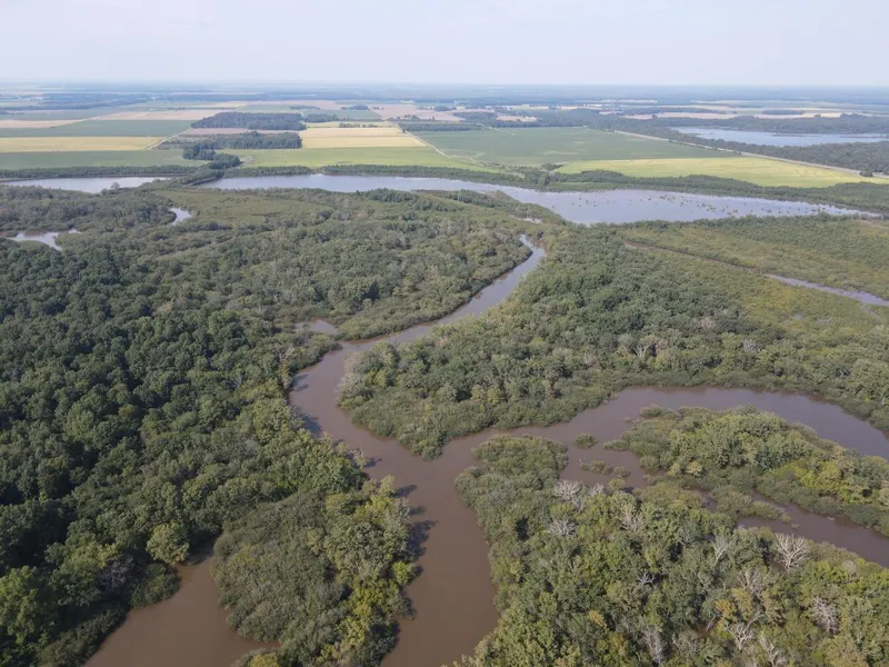 Round Basin on Bayou Des Arc is an 80 acre (m/l) tract that has a half mile of navigable bayou snaking through it as well as a nearly 7 acre basin lake. The rest is bottomland timber with a lot of variety.