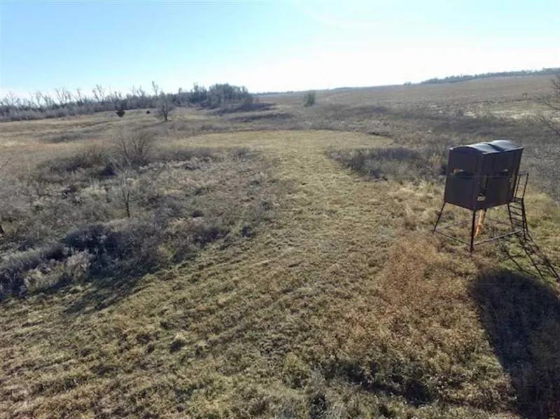 This is a great opportunity to buy a hunting tract with a hunting lodge already in place. The property consists of rolling sand hills with plum thickets, scattered cedars, established food plot, small pond, and a large grove of timber on the south side completely surrounding the house and outbuildings.